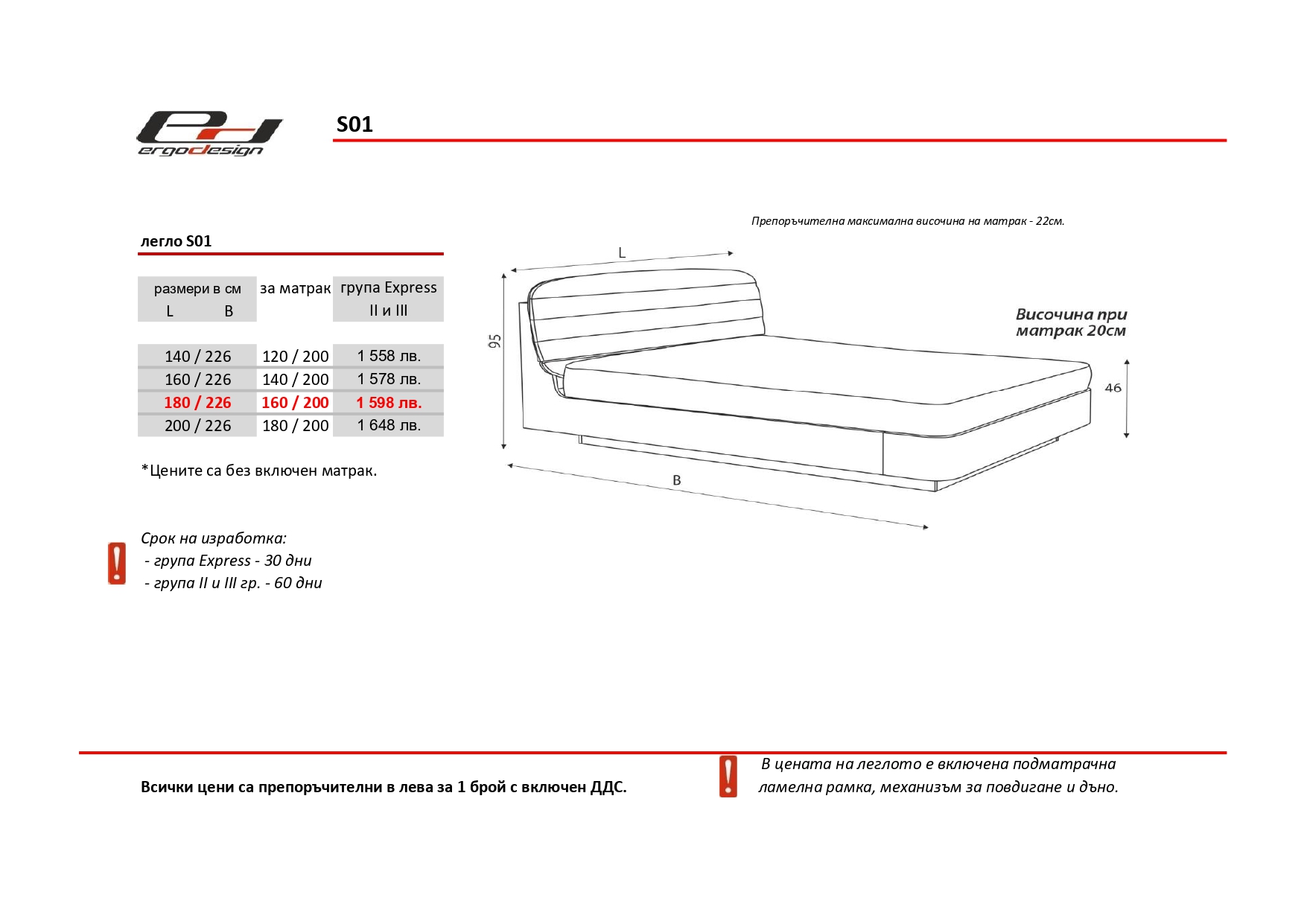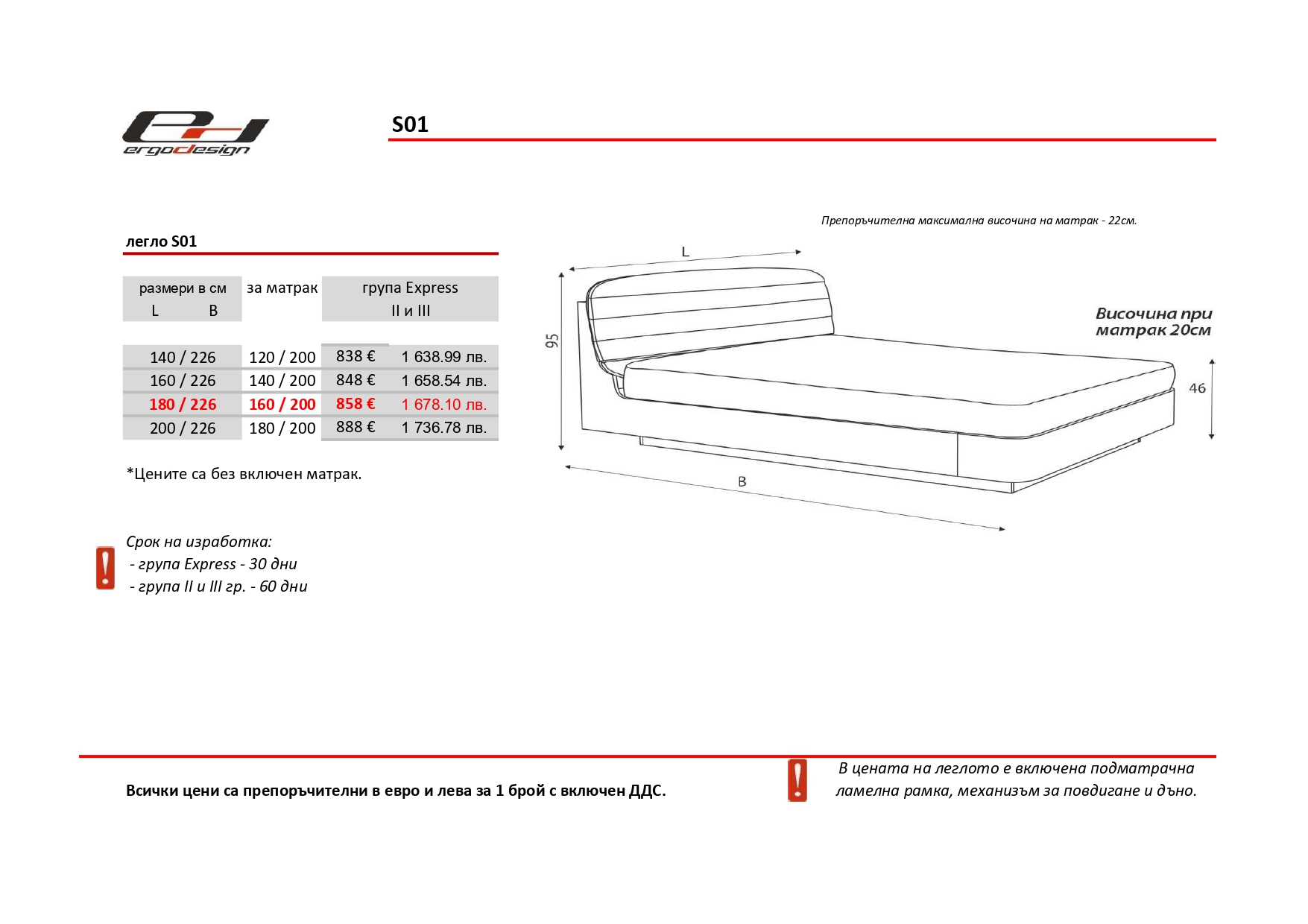 Добрият сън е изключително важен за здравето, а идеалното легло е от най-голямо значение за него. За да се насладите на пълноценна почивка е важно да изберете легло, което да ви гарантира голямо спокойствие и комфорт по време на сън. Това, ще ви го осигури новият модел легло -S01.