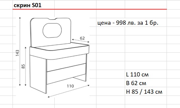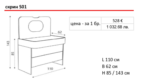 – Фиксирани размери от 110ш / 62д / 85в.