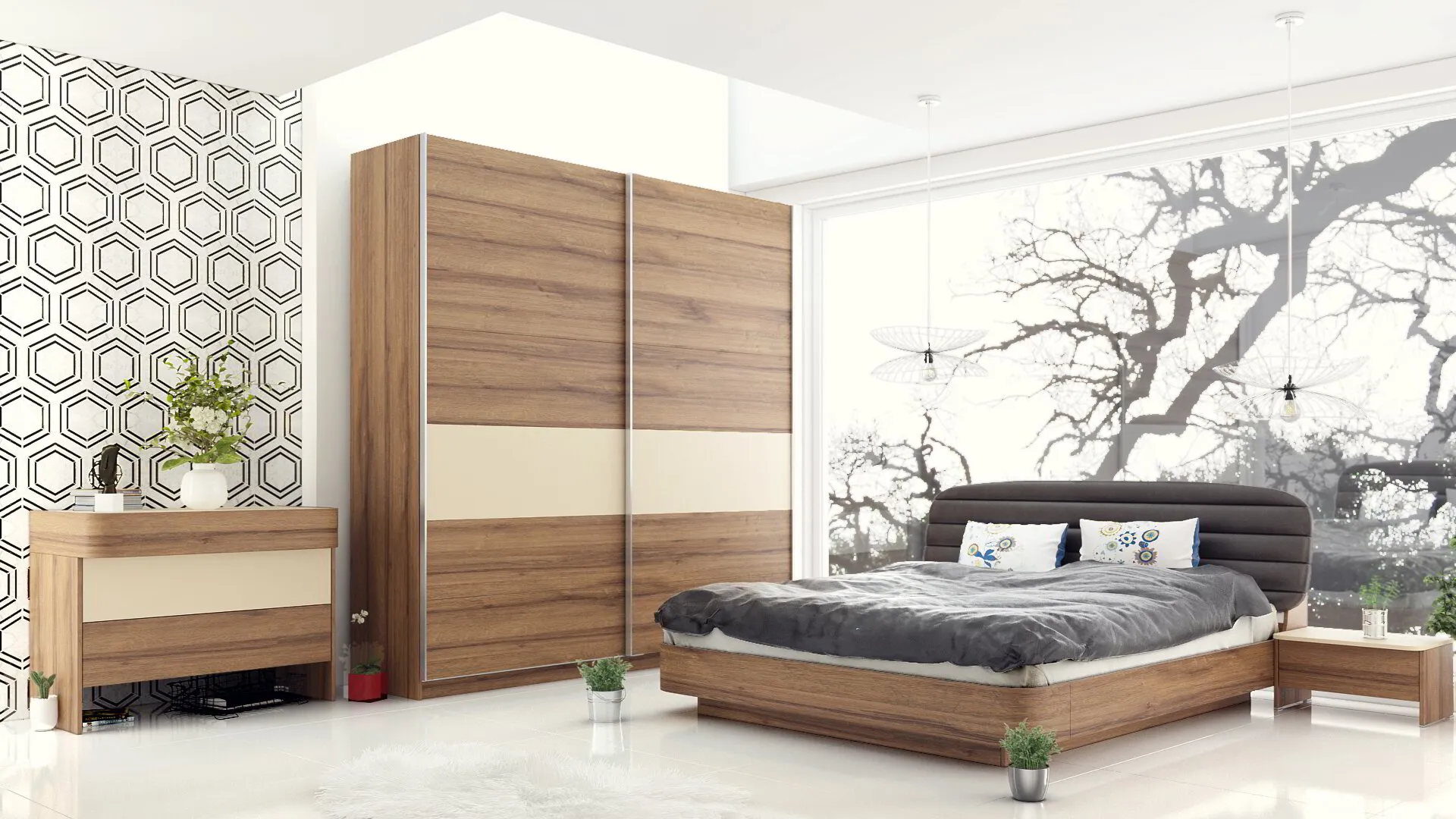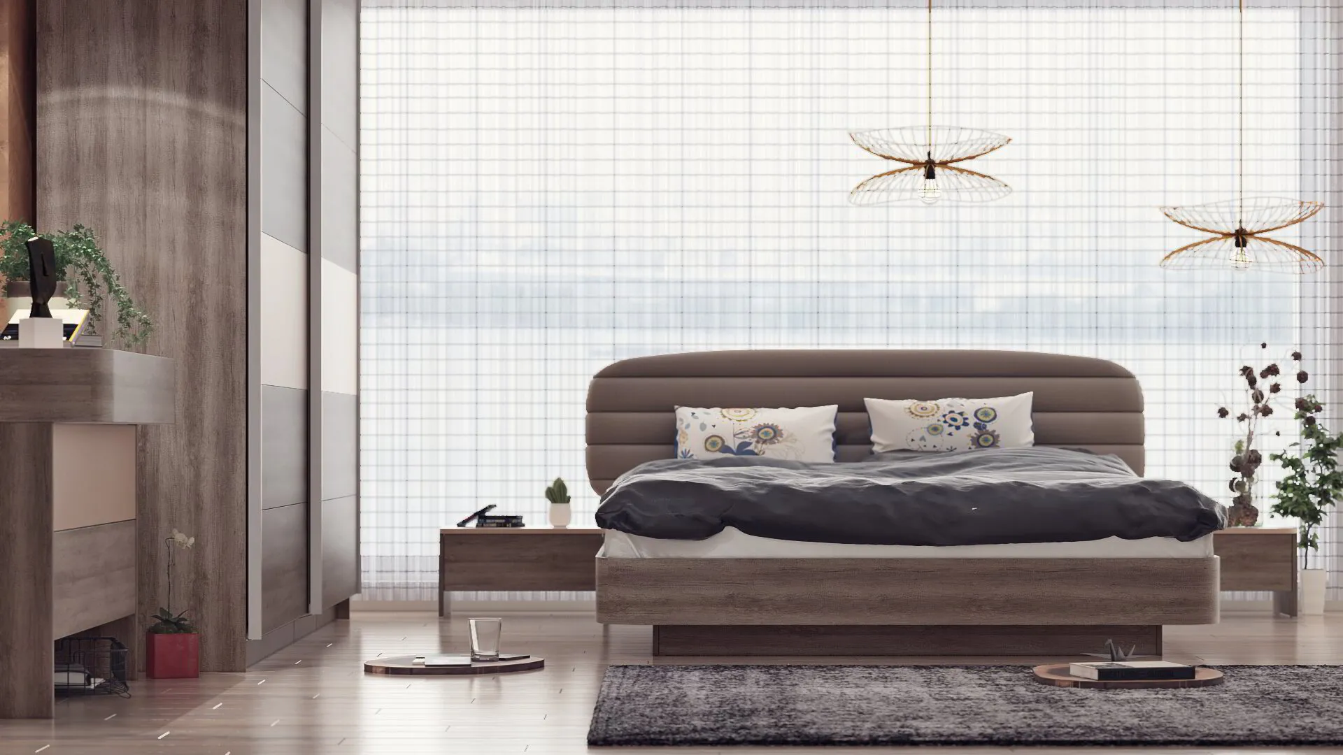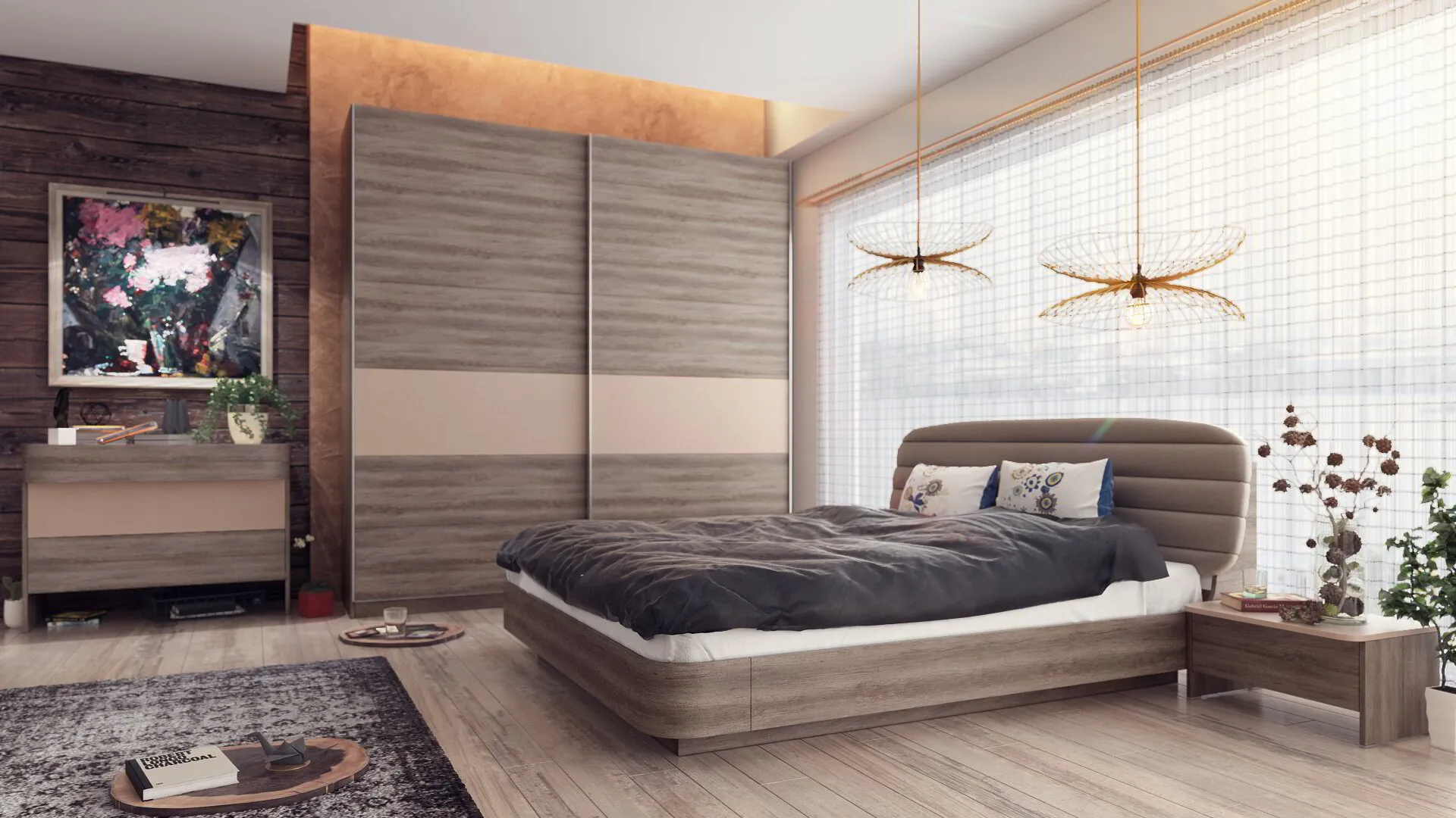 – Гардероб с плъзгащи врати, които не изискват допълнително пространство за отварянето им.